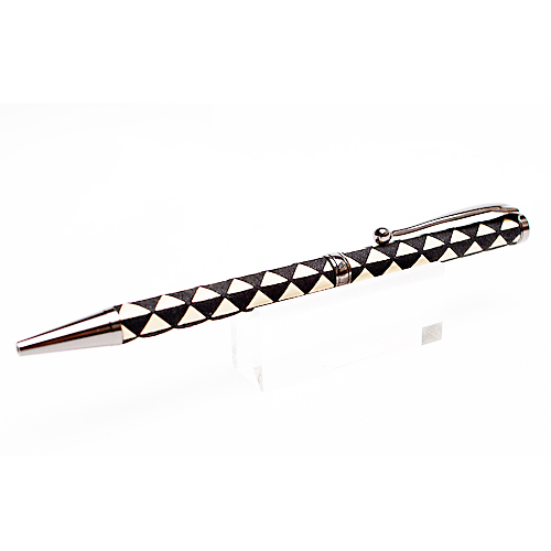 水に強く、通気性があり、丈夫なため、甲冑などの武具に使われ、400年以上の歴史がある伝統工芸品です。その印伝をボールペンに仕上げました。