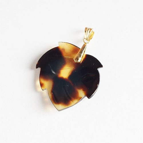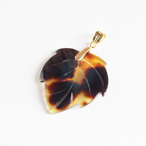 ベッ甲で木の葉をデザインしたペンダントトップです。 ※チェーンは付属しません。 ■素 材:ベッ甲 ■サイズ:縦30mm×横25mm 天然素材を使用しているため、多少の小傷や汚れなどや表示されている画像とは色柄が多少異なる場合もございます。 あらかじめご了承ください。