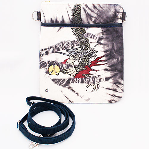 手描き友禅 しぼり染め帆布スマホポーチ龍