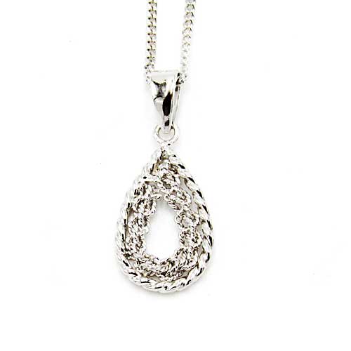 手編みシルバーしずく型小ペンダント