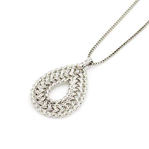 手編みシルバーしずく型ペンダント