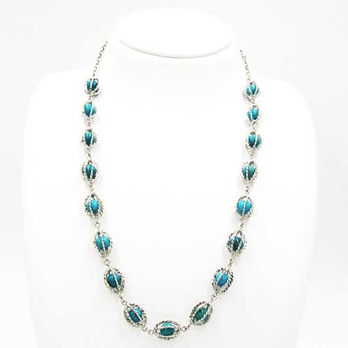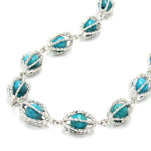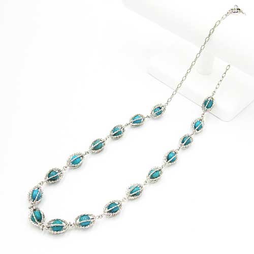 シルバーかご型トルコ石ネックレス(ショート)